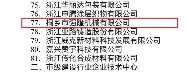 Ured narodne vlade općine Jiaxing jasno je istaknuo da je u cilju daljnje provedbe razvojne strategije vođene inovacijama, jačanje izgradnje tehnoloških inovacijskih sustava poduzeća, poboljšanje tehnoloških inovacijskih sposobnosti i razina poduzeća te promicanje ekonomske transformacije i nadogradnje. Stoga je općinska narodna vlada Jiaxinga ocijenila 84 poduzeća kao Tehnološki centar općinskih poduzeća Jiaxing za 2017. godinu. Čast nam je što je naša tvrtka - Tongxiang Qianglong Machinery Co., Ltd. na listi.